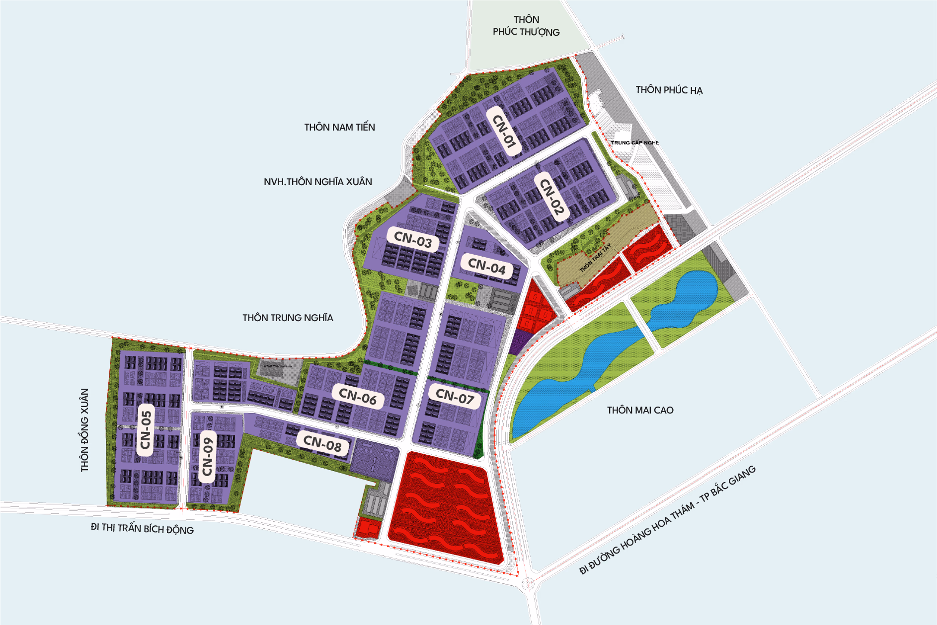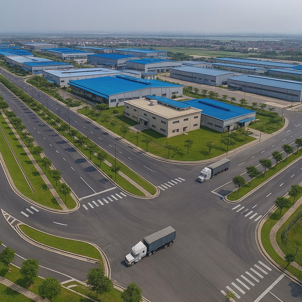 Tổng diện tích dành cho hệ thống đường nội khu lên đến 24,22 ha, được quy hoạch bài bản và trải nhựa đạt chuẩn tải trọng công nghiệp.
